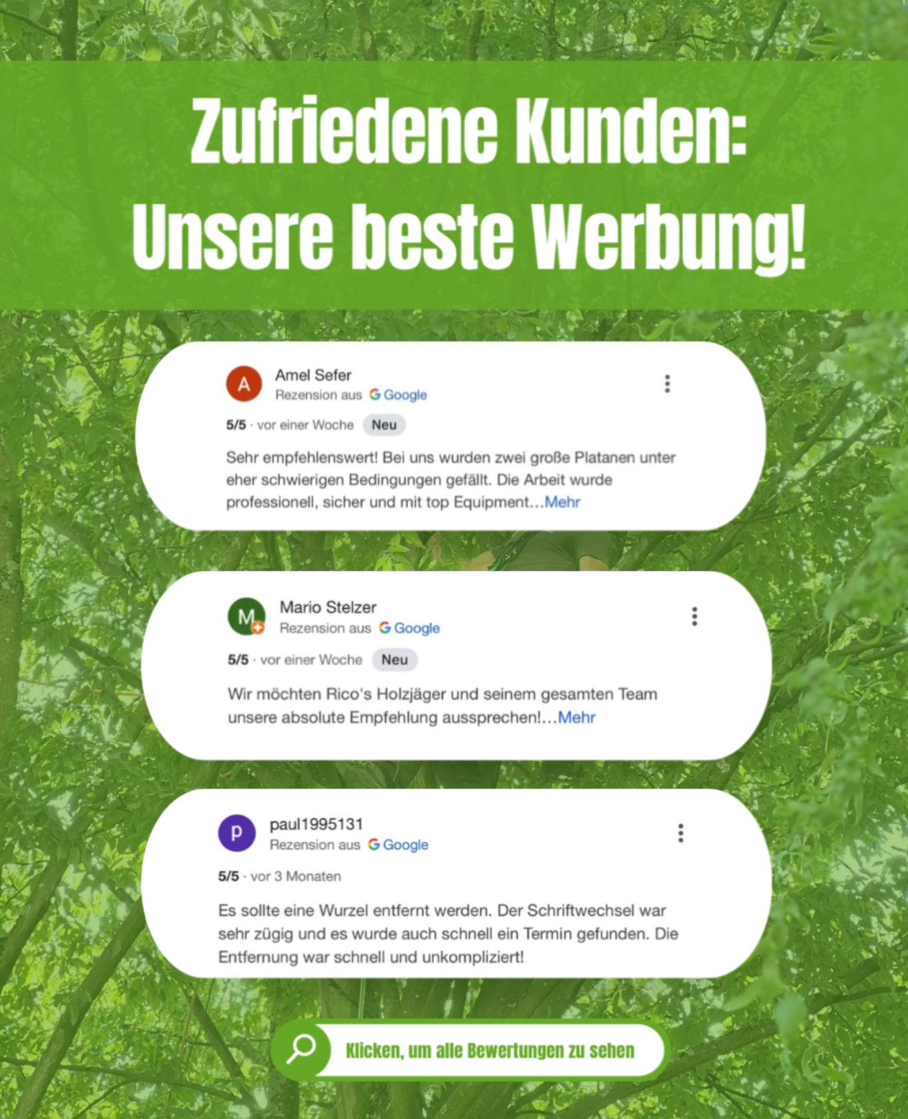 Über jede einzelne Rückmeldung, jedes Lob und jedes Weiterempfehlen freuen wir uns sehr. Hinter jedem Auftrag steckt Vertrauen und das wissen wir zu schätzen.
